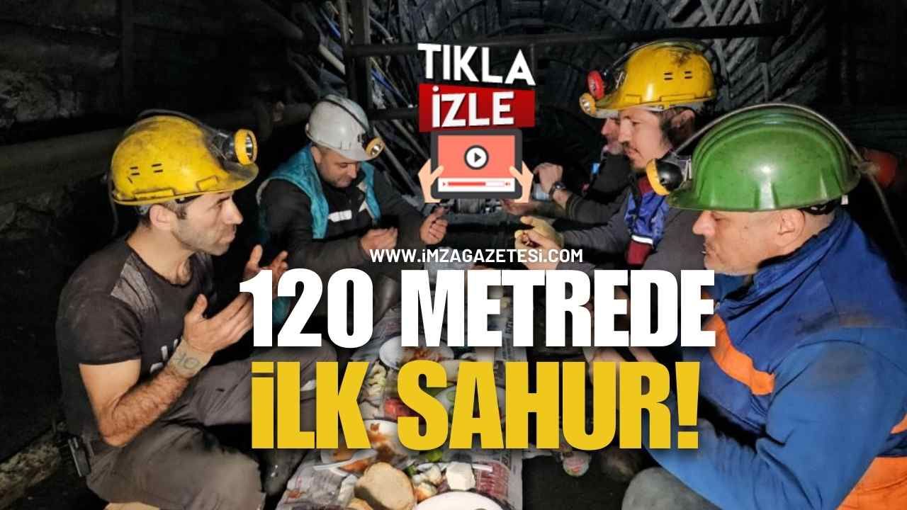 Maden ocağının 120 metre derinliğinde çalışmalarına mola veren işçiler, üretimde tahkimat amacıyla kullanılan ağaç direkleri yan yana getirerek kendilerine mütevazı bir sofra kurdu. Kendi imkanlarıyla hazırladıkları sofrada; biber, peynir, zeytin, domates, salatalık, soğan ve barbunya gibi yiyecekleri paylaşan madenciler, ekmeklerini bölüşerek Ramazan'ın bereketini yerin altında yaşadı.