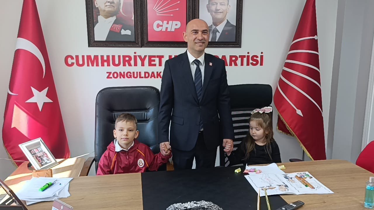 CHP Zonguldak İl Başkanı Devrim Dural, bayram etkinlikleri çerçevesinde makam koltuğunu temsili olarak öğrencilere devretti. İl başkanlığı koltuğunu bu kapsamda Masal Su Ateş (4) ve Mevlüt Bahadır (6) devraldı.