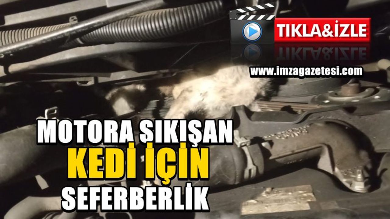 Minibüsün motoruna sıkışan kedi için önce vatandaşlar sonra belediye ekipleri seferber oldu.