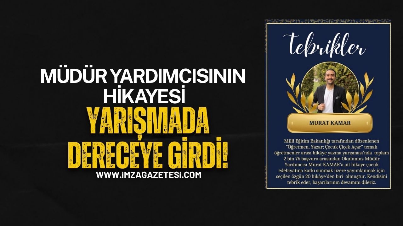 “Milli Eğitim Bakanlığı (MEB) tarafından ‘Öğretmen Yazar, Çocuk Çiçek Açar’ temalı öğretmenler arası hikaye yazma yarışmasında toplam 2 bin 76 başvuru arasından Merih Şuğle Ortaokulu Müdür Yardımcımız Murat Kamar’a ait hikaye çocuk edebiyatına katkı sunmak üzere yayımlanmak için seçilen özgün 20 hikâye’den biri olmuştur.