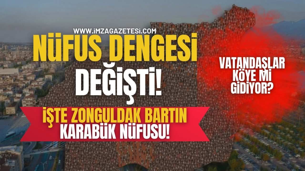 31 Aralık 2025 tarihli Adrese Dayalı Nüfus Kayıt Sistemi (ADNKS) verilerine göre Türkiye nüfusu 86 milyon 92 bin 168’e ulaştı. Zonguldak, Karabük ve Bartın’da il-ilçe merkezleri ile belde-köy nüfusları dikkat çekici dağılım gösterdi.