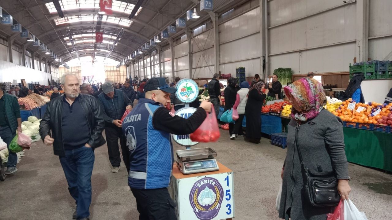 Ereğli Belediyesi Zabıta Müdürlüğü ekipleri, pazaryerinde vatandaşların alışverişlerini güven içinde yapabilmesi için denetimlerini sürdürüyor. Ekipler, hem pazarcı esnafının fiyat ve etiket kurallarına uyup uymadığını kontrol ediyor hem de vatandaşların poşetlerine koyulan ürünleri tartarak olası hileli satışların önüne geçiyor.