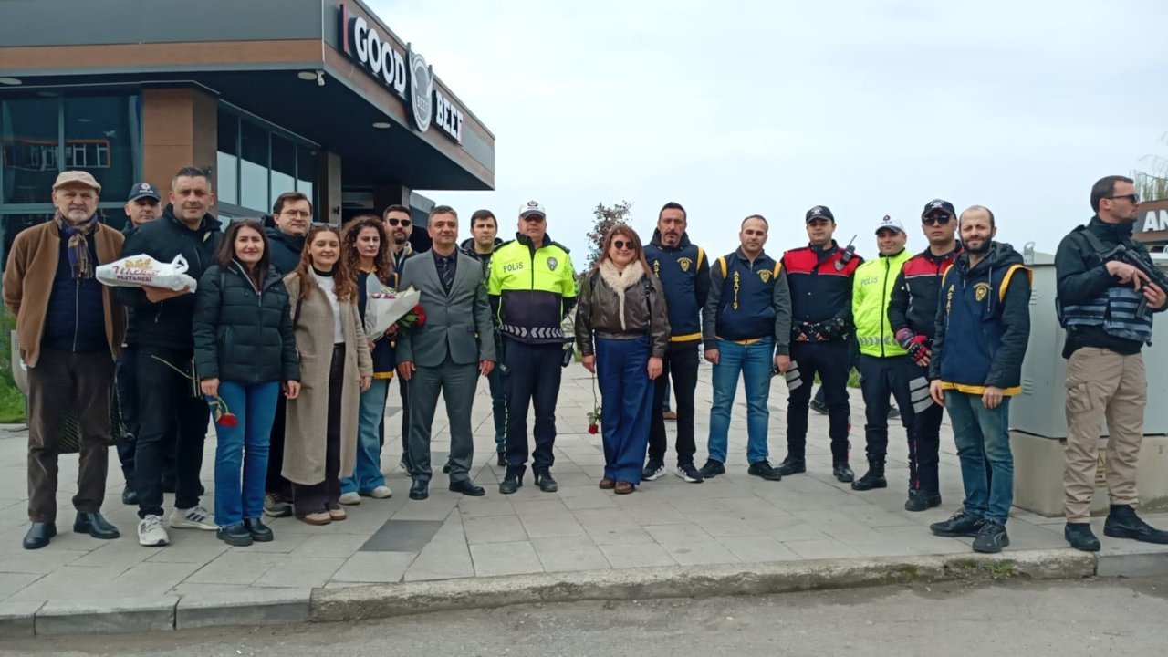 Gazeteciler, Polis Haftası dolayısıyla görev başındaki polis memurlarına gül ve tatlı ikram ederek sürpriz yaptı.