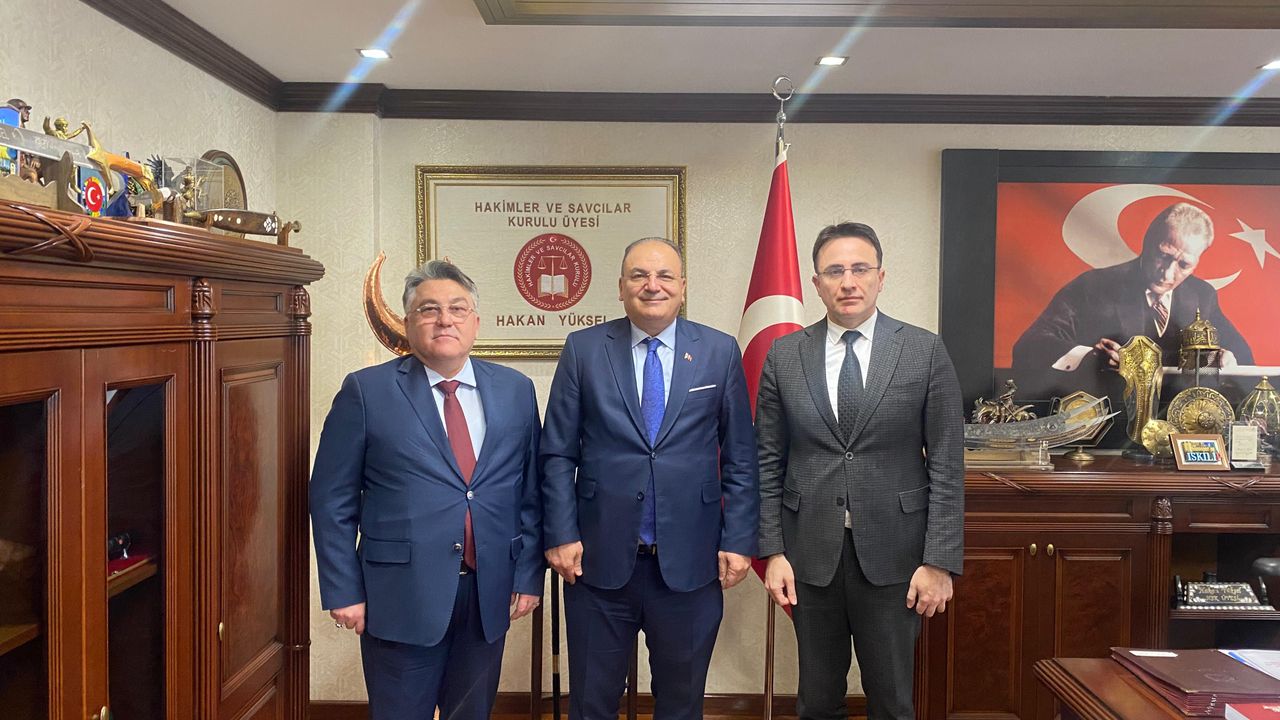 Hâkimler ve Savcılar Kurulu (HSK) Üyesi Hakan Yüksel; Zonguldak Cumhuriyet Başasavcısı Gökhan Kapağan ile Zonguldak Bülent Ecevit Üniversitesi (BEUN) Rektörü Prof. Dr. İsmail Hakkı Özölçer’i makamında kabul etti.