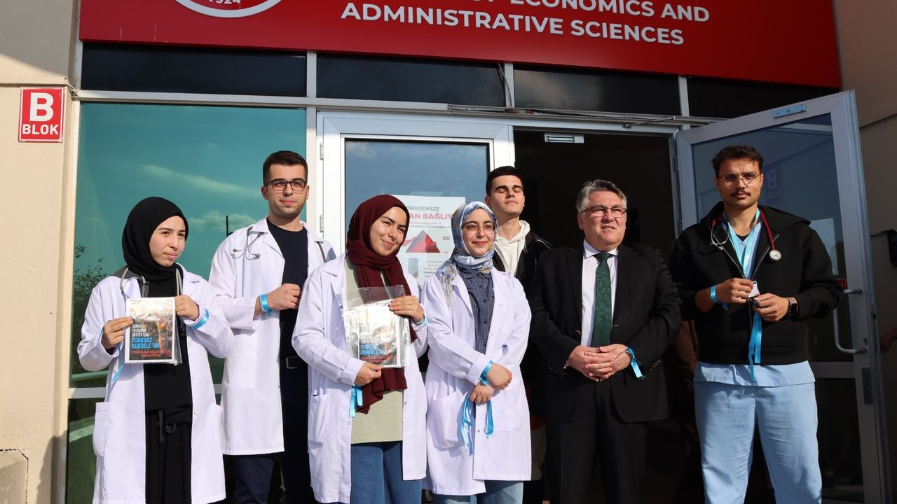 “Gazze’de yaşanan insanlık dramına sessiz kalmamak ve öğrencilerimizin bu konuda gösterdiği duyarlılığı görmek bizler için son derece değerlidir. Turkuaz kurdele, dayanışmanın, umut ve direnişin güçlü bir simgesidir. Hekim ve Liderlik Öğrenci Topluluğumuzun bu anlamlı simgeyi şahsıma takdim etmesi, üniversitemizin sosyal sorumluluk bilincini ne kadar içten ve güçlü bir şekilde benimsediğinin en güzel göstergesidir. Öğrencilerimizin ‘Kampüsün Kanında Hayat Var’ kan bağışı seferberliğimize böyle anlamlı bir destekle katılmış olması da bizleri ayrıca onurlandırdı. Mazlum Filistinli kardeşlerimizin yaşadığı bu zor süreçte savaşın tez zamanda sona ermesini temenni ederek Filistinli kardeşlerimiz için her zaman dua ediyor, onların yanında olduğumuzu bir kez daha güçlü bir şekilde ifade etmek istiyorum. Ayrıca, öğrencilerimizin böylesine anlamlı ve farkındalık yaratan bir duyarlılıkla hareket etmeleri hem gurur verici hem de umut verici olduğunu belirterek kendilerine canıgönülden teşekkür ediyorum.”