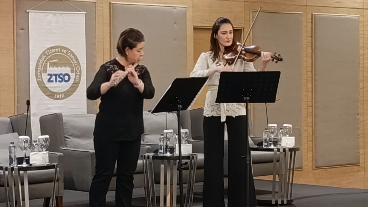Sempozyum öncesinde, Zonguldak Bülent Ecevit Üniversitesi (BEUN) Devlet Konservatuvarı öğretim görevlileri Emel Doğan Uğurlu ve Gonca Yerlikaya, flüt ve keman eşliğinde katılımcılara mini bir konser verdi.