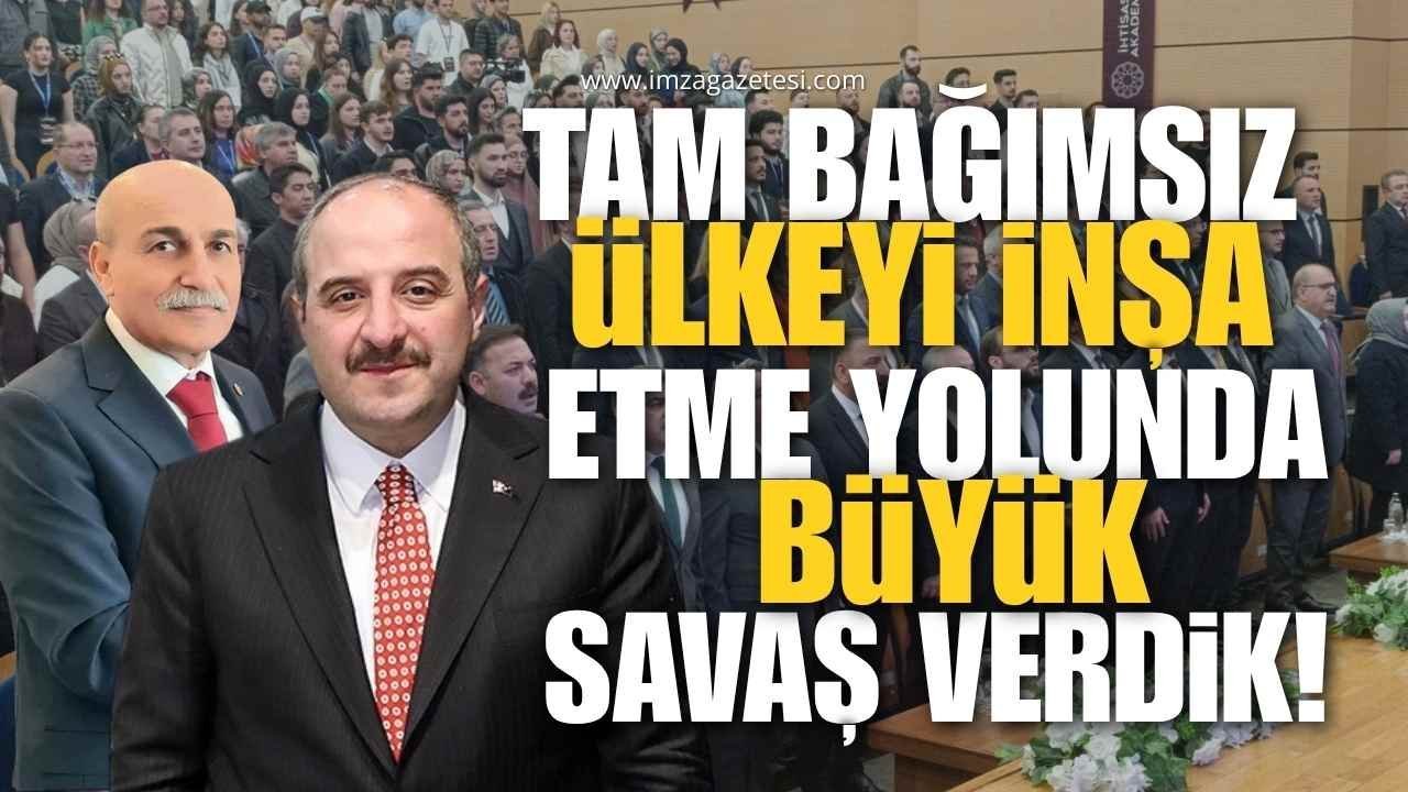 Filyos limanının inşaatına başladık, bu inşaatı yaparken yine devletimiz, siyasilerimiz, Cumhurbaşkanımız stratejik bir karar verdi ve dedi ki ‘madem böyle bir liman yapıyoruz, bunun yeni bölgesinde bir endüstri bölgesi inşa edelim, buraya sanayi gelsin, üretim gelsin, bu limanı kullansın’. İşte biz o limanı inşa ettiğimiz için gerisindeki sanayi bölgesi çalışmalarına başladığımız için Sakarya bölgesindeki gazımımızı bulduktan kısa bir süre sonra biz bu gazı işlemeye başladık, üretmeye, karaya çıkararak kullanmaya başlayabildik. Eğer devletimiz o limanı inşa etmemiş olsaydı, eğer oradaki endüstri bölgesi inşa edilmemiş olsaydı bakın bugün itibariyle bile biz o gazı karaya çıkaramazdık kullanamazdık. Dolayısıyla işte tam bağımsız olma yolunda ülkenizin ihtiyaçları neyse ona göre hareket etme yolunda kararlılıkla ilerlerseniz aslında fırsatları da değerlendirirsiniz. Bunun ekonomik kazanımlarını da elde edersiniz işte Zonguldak onun en güzel örneklerinden bir tanesi, onun için değerli arkadaşlar sevgili genç kardeşlerim bu mücadeleyi biz kolay vermedik.