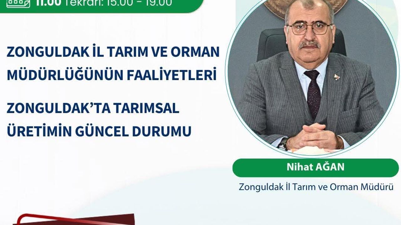 Canlı yayında Zonguldak’taki tarımsal faaliyetler ve üretimin mevcut durumu ele alınacak.