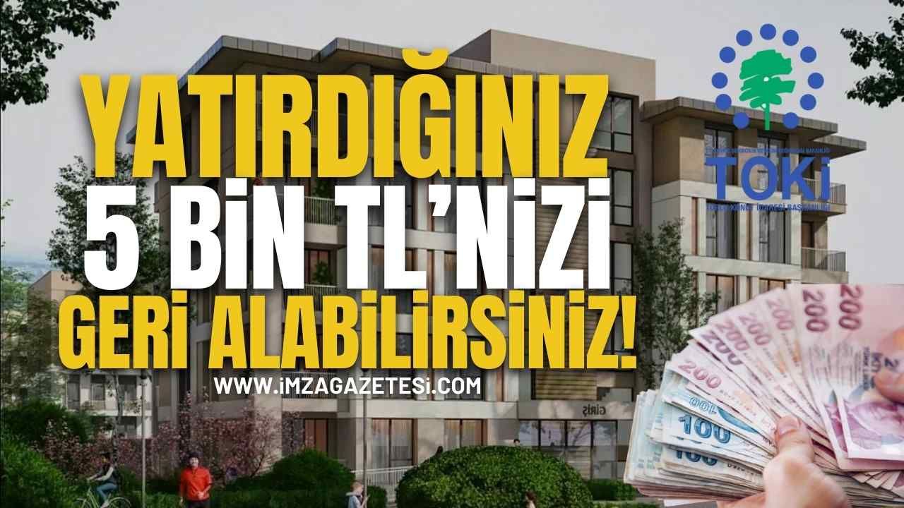 TOKİ tarafından yapılan açıklamada, iade işlemlerinde herhangi bir hizmet bedeli veya komisyon kesilmeyeceği, yatırılan 5 bin TL’nin kuruşu kuruşuna vatandaşa geri ödeneceği vurgulandı.