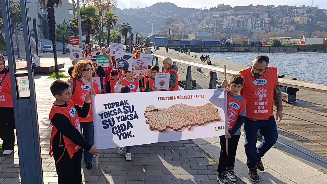 TEMA Vakfı Zonguldak İl Temsilciliği, 17–30 Kasım Erozyonla Mücadele Haftası kapsamında “Toprak Yoksa Su, Su Yoksa Gıda Yok” söylemiyle toprağın yaşamımızdaki önemine dikkat çekti. Etkinlik, basın açıklaması, yürüyüş ve bilgilendirme standı ile vatandaşlardan büyük ilgi gördü.