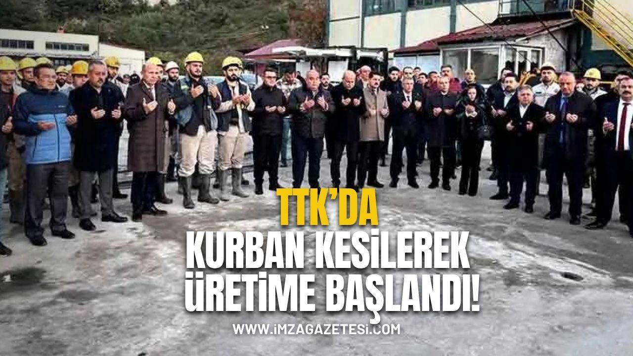 Türkiye Taşkömürü Kurumu’nun (TTK) Amasra Müessese Müdürlüğü’nde yeni tam mekanize ayak üretim panosu için düzenlenen törende, kurban kesilerek ve duaların okunmasının ardından üretime başlandı.