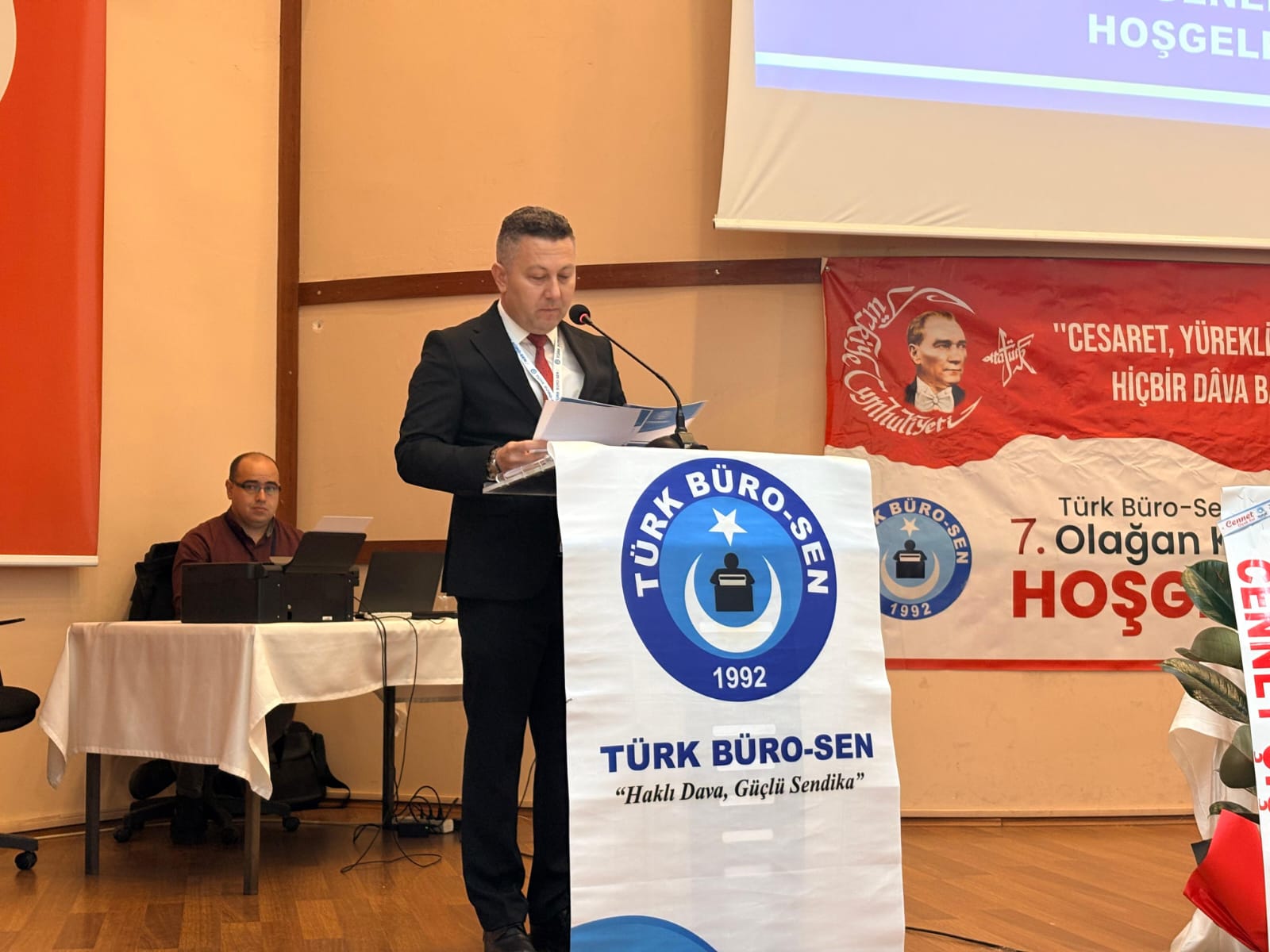 Genel kurulda konuşan Köksal Tunçtürk, Türk Büro-Sen’in Türkiye Kamu-Sen çatısı altında devletine, milletine, bayrağına ve Cumhuriyetine sadakatle bağlı büyük bir aile olduğunu vurguladı. Tunçtürk, “Bu yola çıkarken tek gayemiz; milli değerlerimize sahip çıkarak emeğin ve alın terinin hakkını korumak olmuştur. Biz milli ve milliyetçi bir sendikayız. Mücadelemizi her zaman ‘Türkiye sevdamız, ekmek için kavgamız’ anlayışıyla yürüttük” dedi.