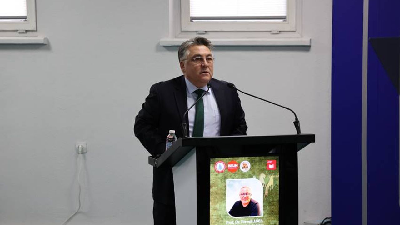 BEUN Teoman Duralı İnsan ve Toplum Bilimleri Fakültesi Türk Dili ve Edebiyatı Bölümü ile Genç Kalemler Edebiyat Topluluğu katkılarıyla düzenlenen konferansın konuşmacısı Eskişehir Osmangazi Üniversitesi Türk Dili ve Edebiyatı Bölümü Öğretim Üyesi Prof. Dr. Ferruh Ağca oldu. Farabi Kampüsü Tahir Karauğuz Konferans Salonu’nda yoğun ilgiyle gerçekleştirilen programa; BEUN Rektörü Prof. Dr. İsmail Hakkı Özölçer, Rektör Yardımcısı Prof. Dr. Servet Karasu, senato üyeleri, akademik ve idari personel ile çok sayıda öğrenci katılım sağladı.