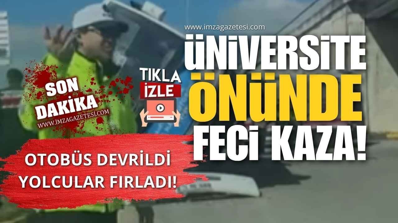 Bartın Üniversitesi Kutlubey Kampüsü önünde az önce feci bir trafik kazası meydana geldi. Edinilen bilgilere göre, seyir halindeki bir belediye otobüsü kontrolden çıkarak yan yattı.