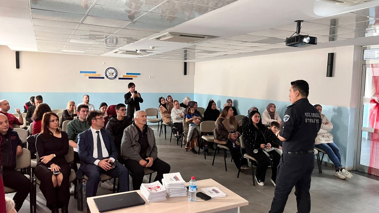 Bu kapsamda, İtfaiye Amiri Burak Demirören, BEUN Ereğli Eğitim Fakültesi Türkçe Öğretmenliği bölümü öğrencileriyle birlikte Kavaklık İlkokulu’nda velilere yönelik ‘Evde Güvenli Yaşam’ semineri verdi, tatbikat yapıldı.