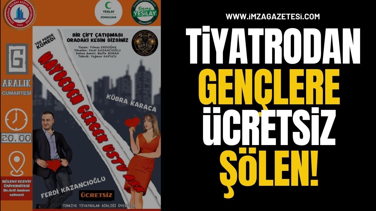 Zonguldak Kent Tiyatrosu’nun sahneleyeceği “Haybeden Gerçeküstü Aşk” adlı komedi oyunu, üniversiteli gençlere ücretsiz olarak sunulacak.