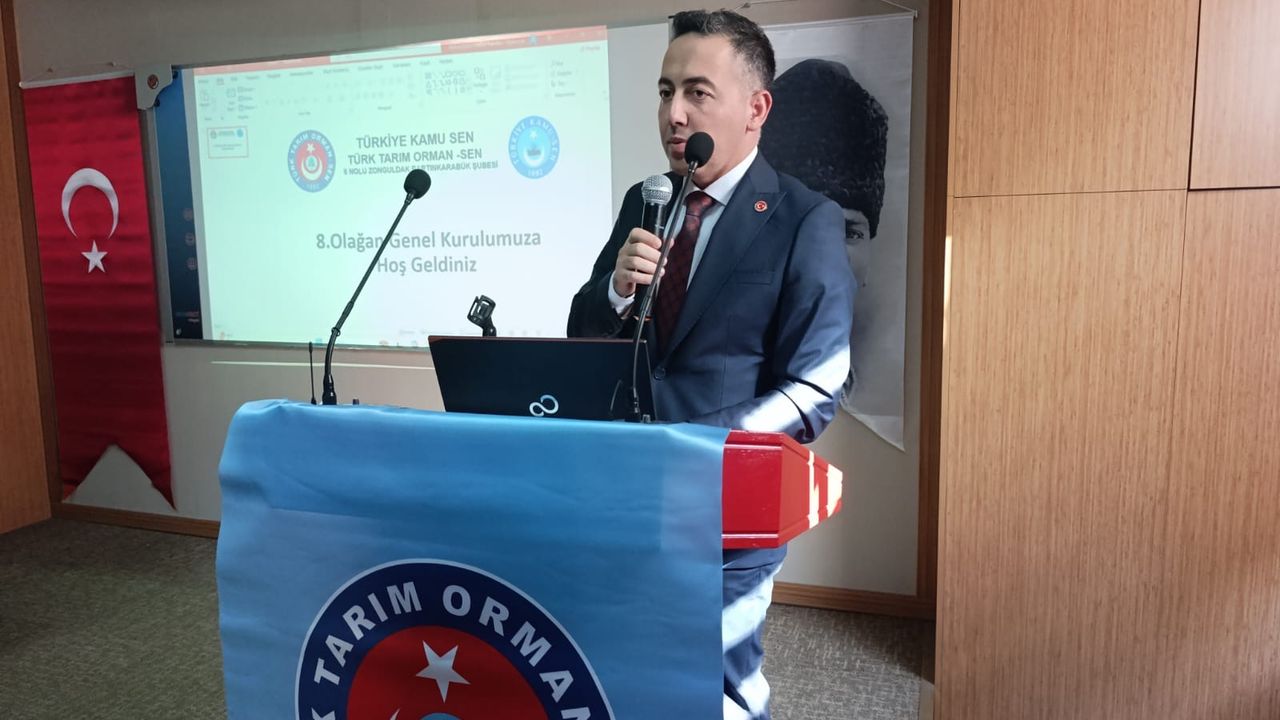Tarım Orman Sen Genel Başkan Yardımcısı Gürkan Bozkurt, Türk Tarım Orman Sen 6 Nolu Zonguldak-Karabük-Bartın Şubesi’nin 8. Olağan Genel Kurulunda konuştu. Geçmiş toplu sözleşme dönemine ilişkin değerlendirmelerde bulunan Bozkurt, yetkili sendikaların kamu çalışanlarının menfaatlerini yeterince koruyamadığını dile söyledi.