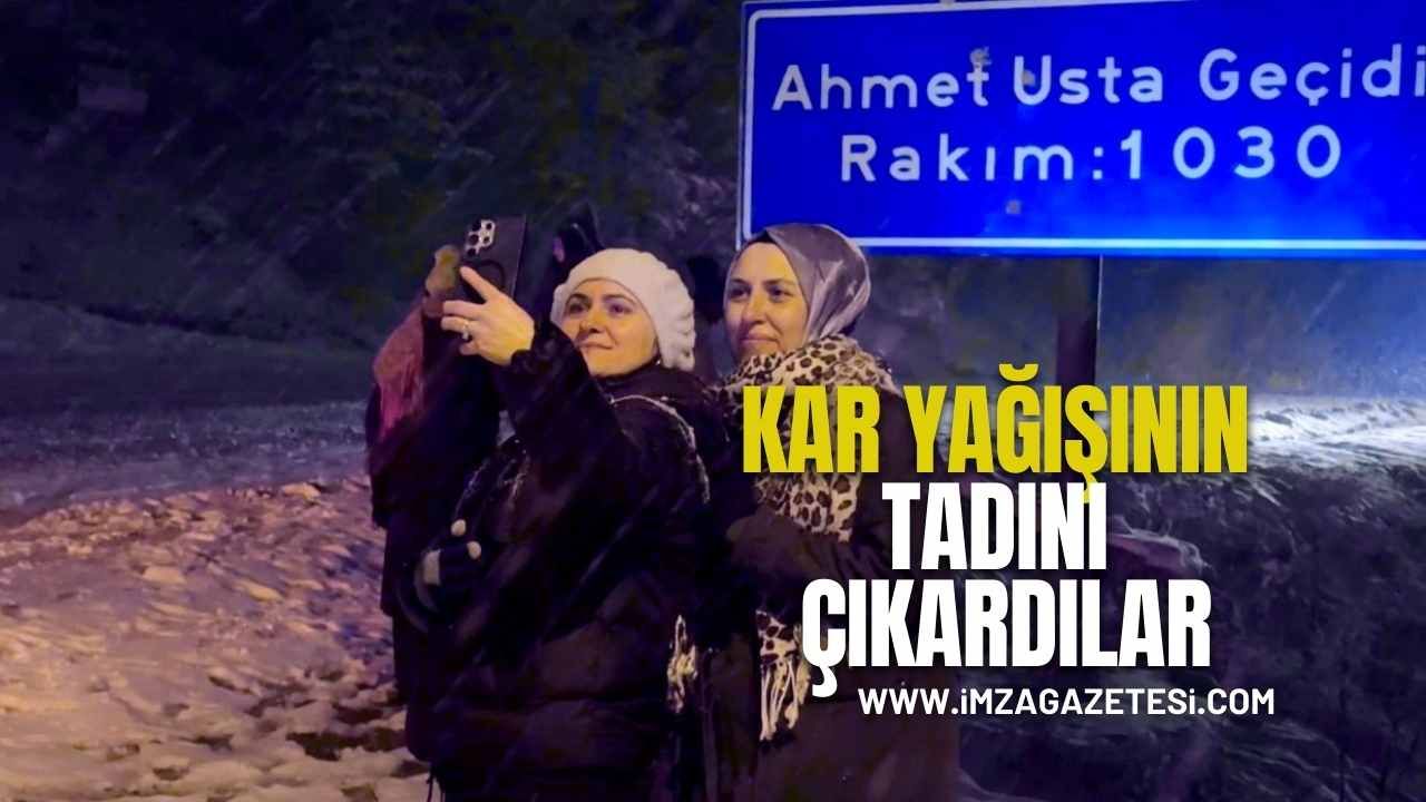 Kar yağışını fırsat bilen vatandaşlar, bin 30 rakımlı Ahmetusta Geçidi’ne akın etti. Bölgeye gelenler ateş yakarak ısınırken, bol bol fotoğraf çektirip karın keyfini çıkardı.