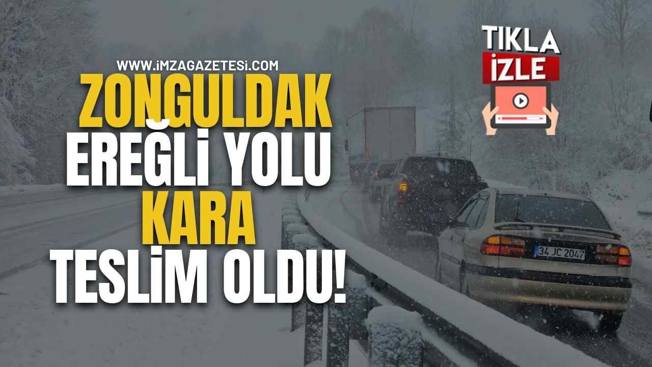 Zonguldak-Ereğli istikametinde yoğunlaşan kar yağışı nedeniyle ulaşımda ciddi aksamalar yaşanırken, çok sayıda araç yolda mahsur kaldı.