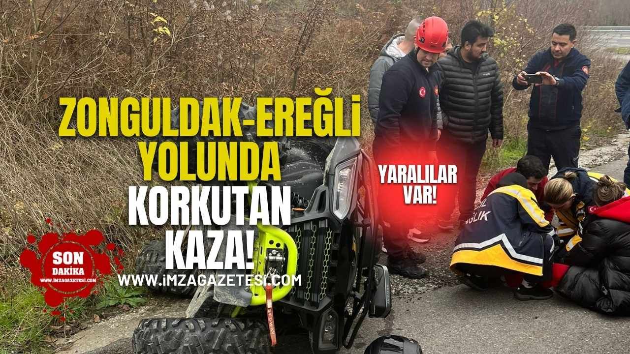 Zonguldak'ın Ereğli yolunda meydana gelen trafik kazasında, kontrolden çıkan bir ATV'nin devrilmesi sonucu iki kadın sürücü yaralandı. Olay yerine hızla intikal eden ekipler, yaralılara ilk müdahaleyi gerçekleştirdi.