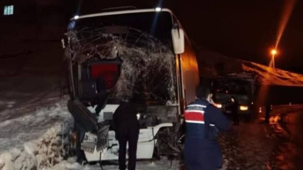 Zonguldak’ta yolcu otobüsü buzlu yolda kayarak kamyonete çarptı. Otobüste bulunan 25 yolcu kazayı yara almadan atlattı.