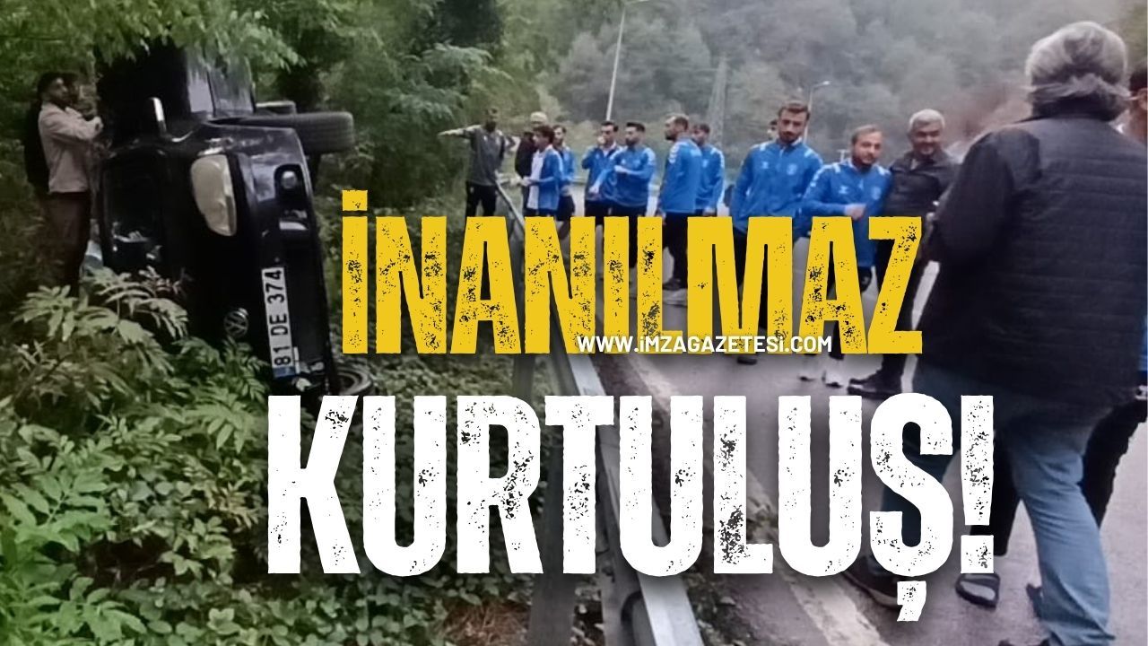 Olay anında Zonguldak’a maç için gelen Çankırıspor futbolcuları, kazayı görür görmez yardıma koştu. Takım oyuncuları, devrilen otomobildeki yaralıları araçtan çıkararak ilk yardımı sağladı.