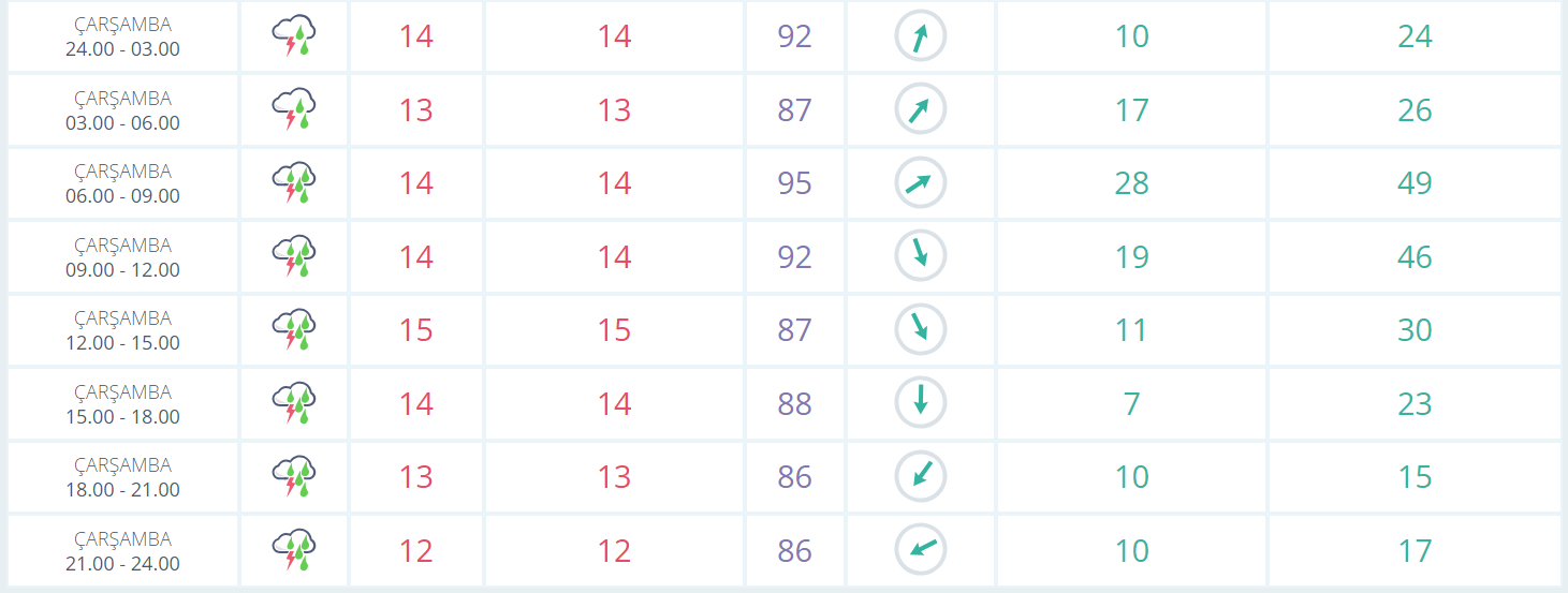 Zonguldak'ta 12 Kasım Çarşamba tarihinde hava durumu raporları Meteoroloji Genel Müdürlüğü web sitesi tarafından yayınlandı. Verilere göre gün boyu şiddetli yağış bekleniyor.
