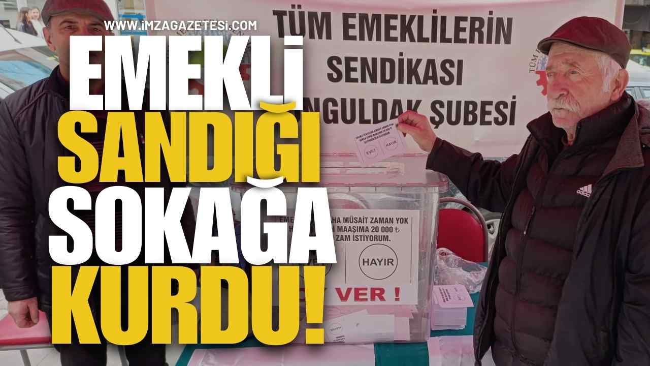 Tüm Emeklilik Sendikası Zonguldak Şubesi öncülüğünde defterdarlık önünde kurulan sandık, emeklilerin ekonomik taleplerini görünür kılmayı amaçladı. Sabah saatlerinden itibaren çarşıya çıkan emekliler ve vatandaşlar sandığa uğrayarak oylarını kullandı. Etkinliğin merkezinde ise emekli maaşlarına yapılması istenen seyyanen zam yer aldı.