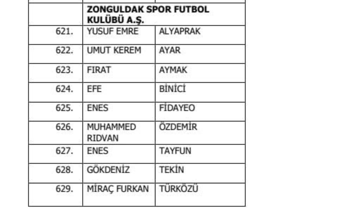 Bahis oynadığı tespit edilen Zonguldakspor oyuncularının isimleri şöyle: