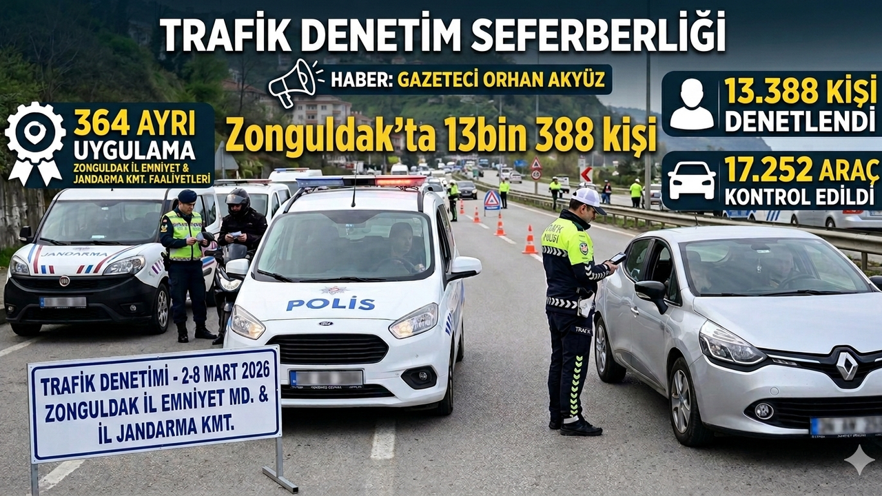 Gazeteci Orhan Akyüz’ün haberine göre, Zonguldak İl Emniyet Müdürlüğü ve İl Jandarma Komutanlığı’nca 2-8 Mart 2026 tarihlerinde yapılan uygulama ve faaliyetlerinde trafikte denetimler gerçekleştirildi.