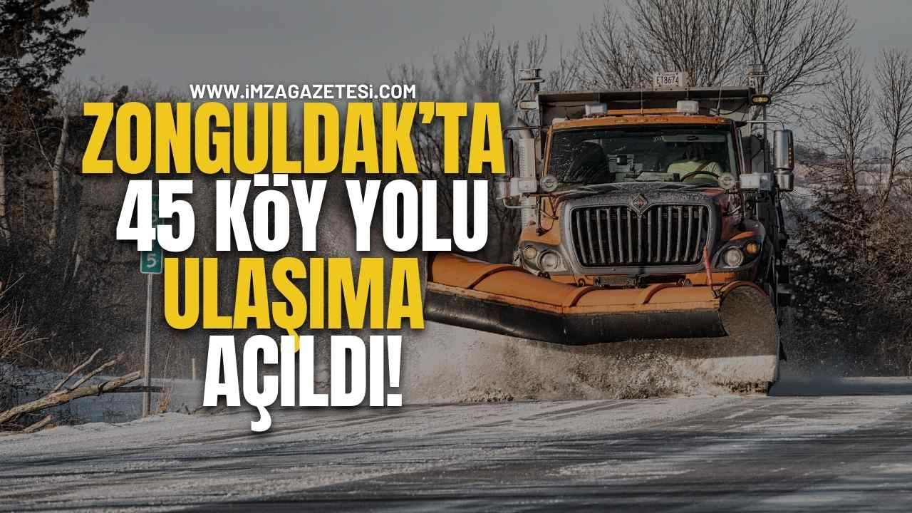 Gazeteci Orhan Akyüz’ün haberine göre, 13 Ocak Salı günü saat 12.00 itibariyle Zonguldak’ta kar yağışından dolayı il genelindeki kapalı 133 köy yolunun 45’i ulaşıma açıldı.