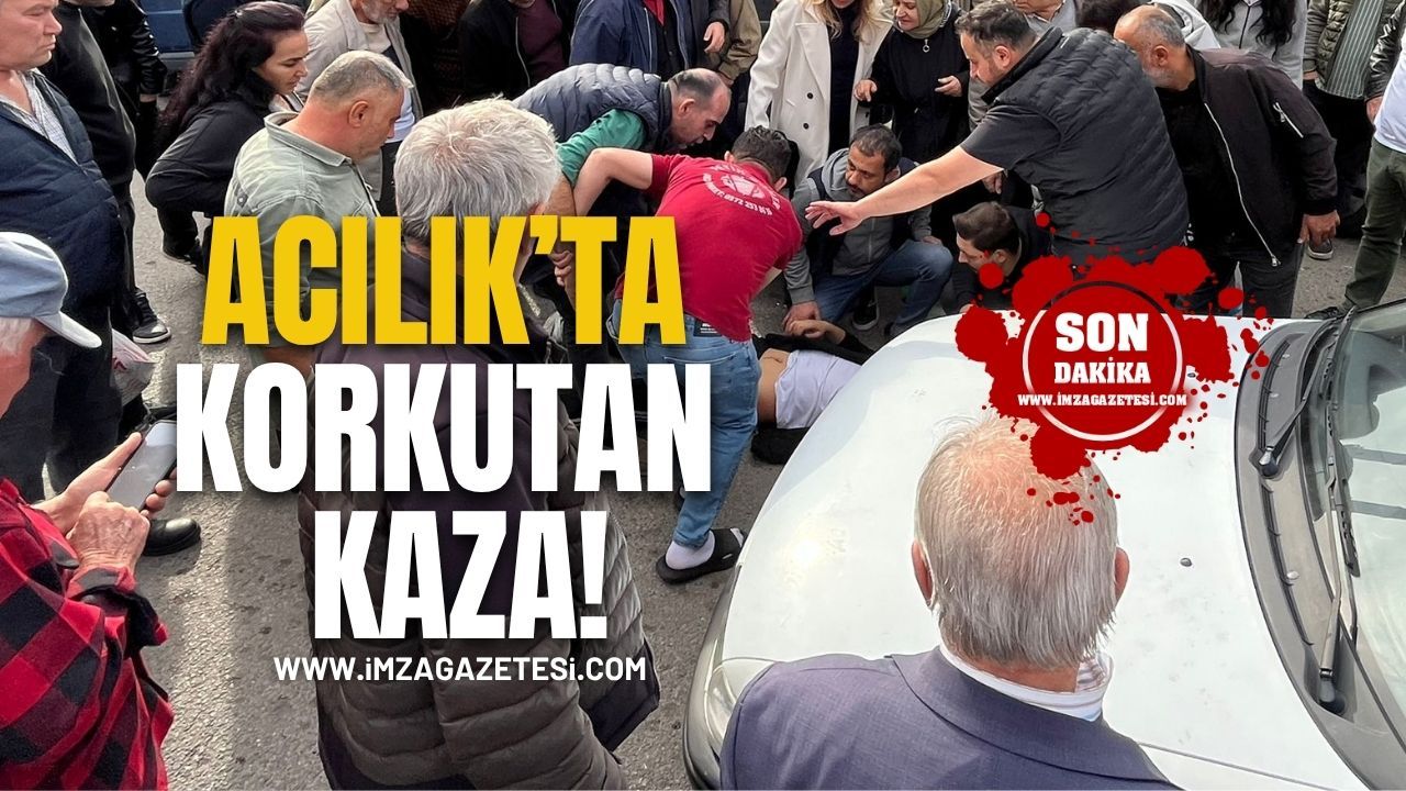 Acılık Caddesi 7/A Market önünde meydana gelen kazada, seyir halindeki otomobil, önünde giden motosiklete çarptı. Çarpmanın etkisiyle motosiklet sürücüsü yola savrularak düşerken, çevrede kısa süreli panik yaşandı.