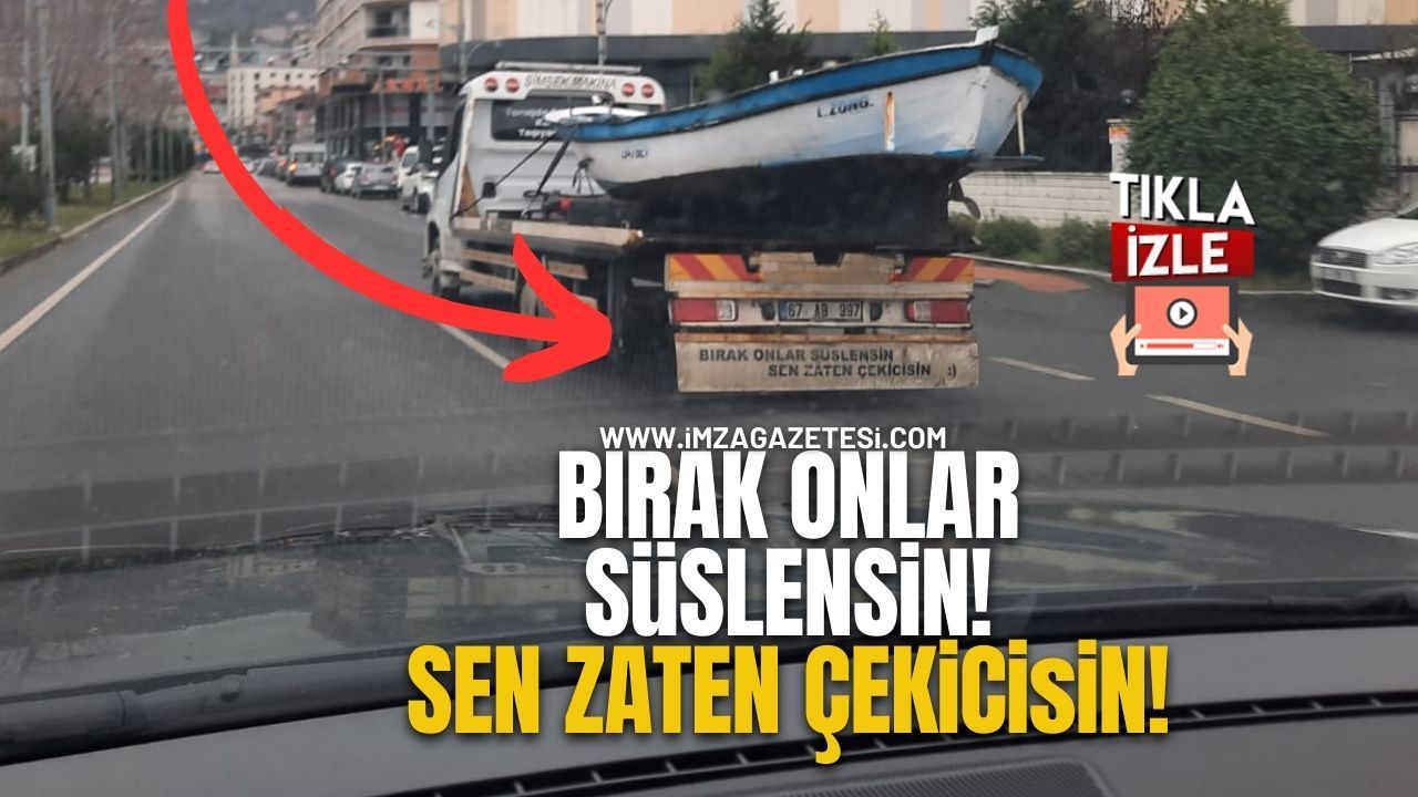 Zonguldak'ta bir çekicinin arkaya yazdığı yazı kamyon arkası yazılarda zirve olarak nitelendirildi. Zonguldak'tan Kozlu ilçesine süzerinde kayık varken İmza Gazetesi tarafından görüntülenen çekicinin arkasındaki "Bırak onlar süslensin, sen zaten çekicisin :)" yazısı çok beğenilirken, kamyon arkası yazı furyasında son nokta, zirve olarak yorumlandı.