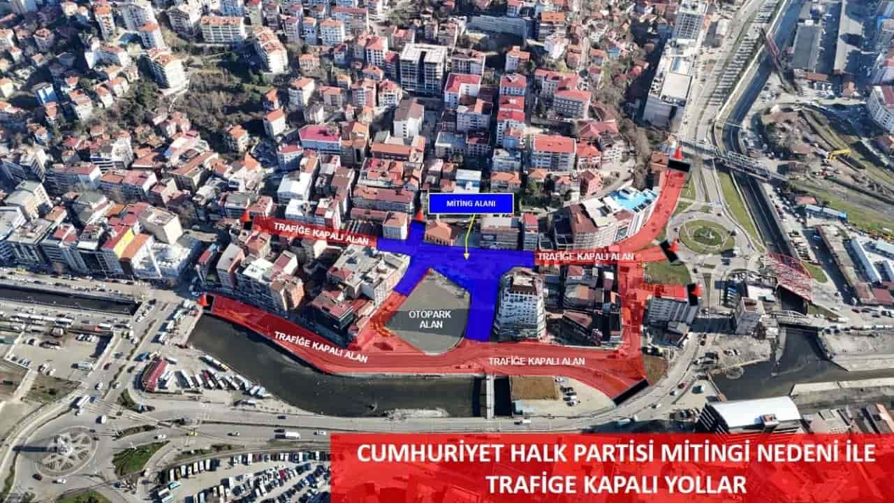 Zonguldak'ta, 22 Kasım 2025 Cumartesi günü öğleden sonra gerçekleştirilecek siyasi bir etkinlik nedeniyle şehir merkezinde önemli trafik tedbirleri alınacak. Cumhuriyet Halk Partisi'nin İşçi Anıtı çevresinde düzenleyeceği açık hava toplantısı sebebiyle bazı ana arterler trafiğe kapatılacak.
