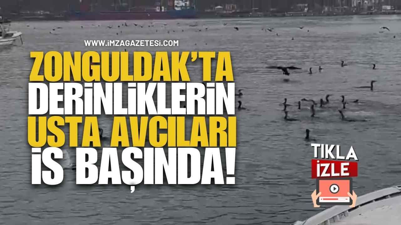 Zonguldak’ın şehir merkezindeki Türkiye Taşkömürü Kurumu’na (TTK) ait limanda sürüler halinde bir araya geldikleri görülen 150 metreye kadar dalabilen doğanın en yetenekli dalgıçlarından derinliklerin usta muhteşem avcıları karabatak kuşlarının avlanırken oluşturdukları görülmeye değer görsel şölen, gazeteci Orhan Akyüz’ün cep telefonunun kamerasına anbean yansıdı.