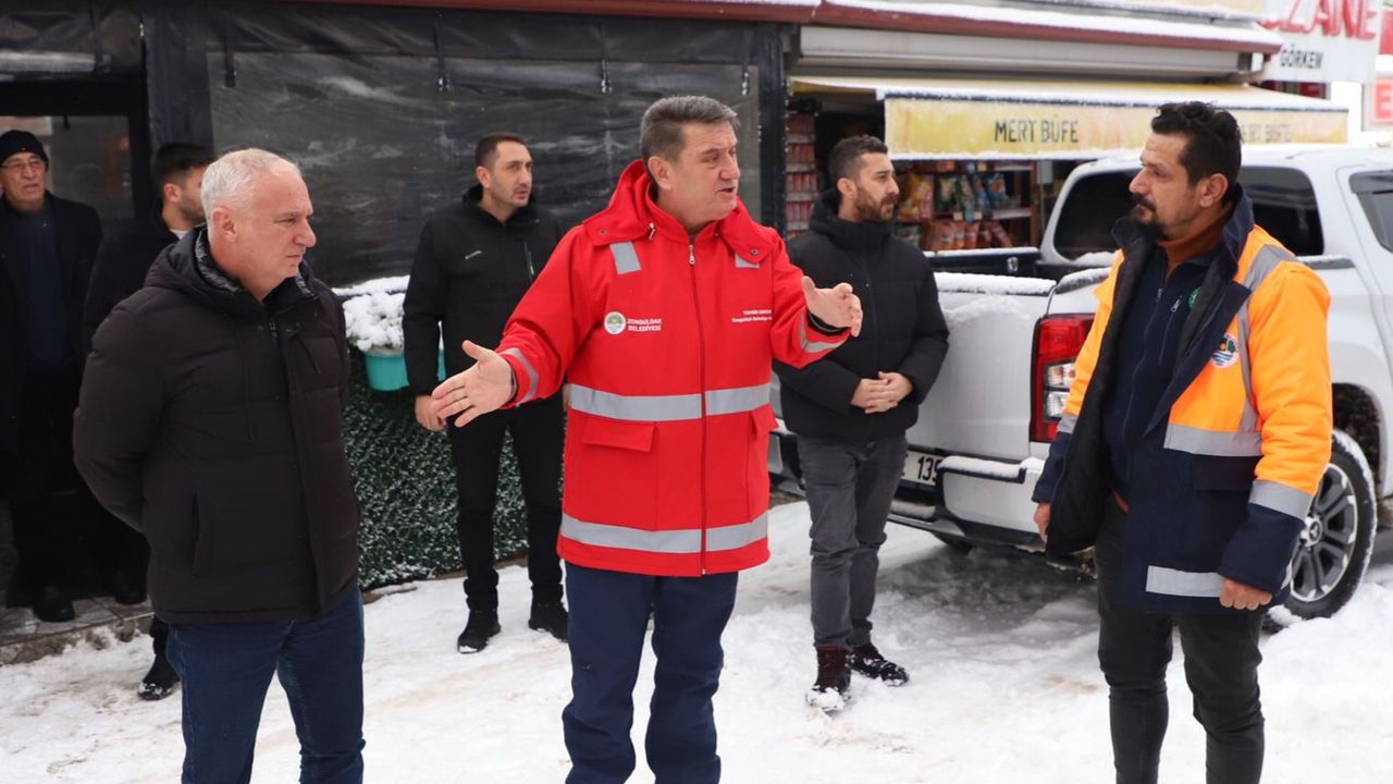 Ulaşımın aksamaması için yol açma ve tuzlama çalışmaları hız kesmeden devam ederken, Belediye Başkanı Tahsin Erdem de sahaya inerek çalışmaları yerinde denetledi.