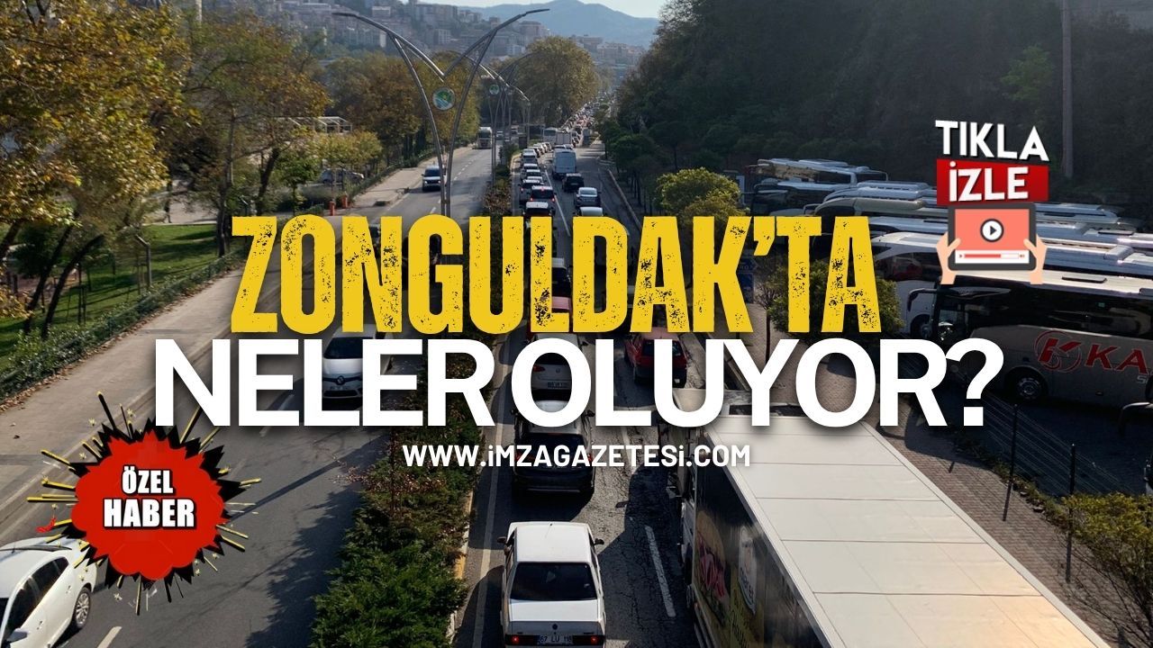 Zonguldak’taki trafik yoğunluğu, adeta düğün konvoyu görünümü oluşturdu.