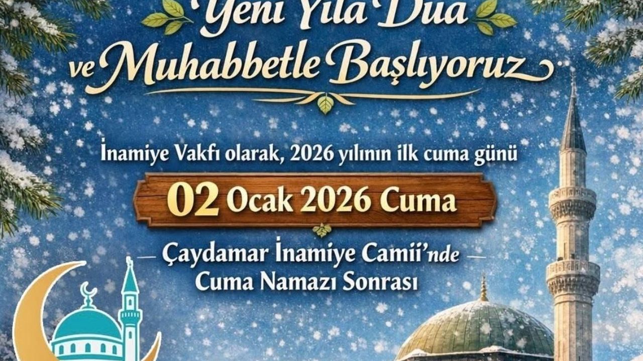 “İnamiye Vakfı olarak 2026 yılının ilk 2 Ocak 2026 Cuma günü, Çaydamar İnamiye Camii’nde cuma namazı sonrasında cemaatimize ve tüm vatandaşlarımıza sıcak sâlep ikramında bulunacağız.