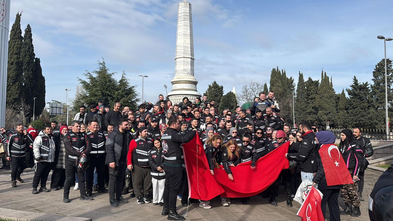 Coşkulu ve anlamlı geçen sürüşün ardından kortej, Edirnekapı Şehitliği’ne ulaştı. Burada dev Türk bayrağı açılarak İstiklal Marşı okundu, ardından aziz şehitlerimizin kabirleri ziyaret edilerek dualar edildi.